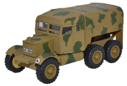 For the latest release on a military version of the Scammell Pioneer, we’ve chosen a desert camouflage scheme of beige and olive green with olive grey interior, as deployed by the German Luftwaffe on the island of Crete during WWII. Relieved only by the white/black and red insignia on the nearside front mudguard and the rear of the vehicle, it is registered WL-256413.